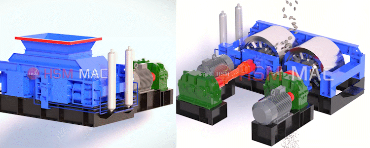 中型對輥破碎機是利用兩組單獨傳動的輥軸,相對旋轉產生的擠軋和磨剪力來破碎物料。物料經給料口落入兩輥之間,經對輥擠壓破碎之后成品自然落下,當遇到過硬或者不可破碎的物料時,輥子可憑液壓缸或彈簧的作用自動退讓,使雙輥之間的間隙增大,過硬或不可破碎的物料自然落下,以此來保證機器不被損壞,相向轉動的兩個輥子可以調節液壓缸或彈簧的壓力來控制產品的出料粒度。